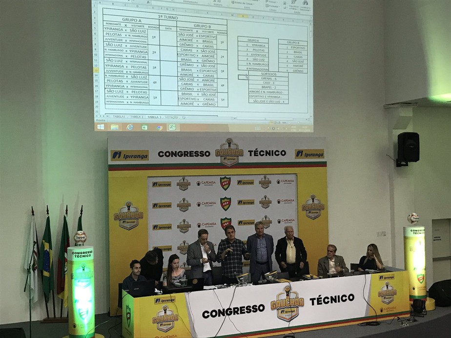 Paula MenezesEm congresso técnico realizado nesta quinta-feira em Porto Alegre, a Federação Gaúcha de Futebol (FGF) divulgou a nova fórmula de disputa e a tabela do primeiro turno do Campeonato Gaúcho de 2020. As 12 equipes foram divididas em dois grupos, A e B, que vão se enfrentar dentro e fora das chaves, em turno e returno.